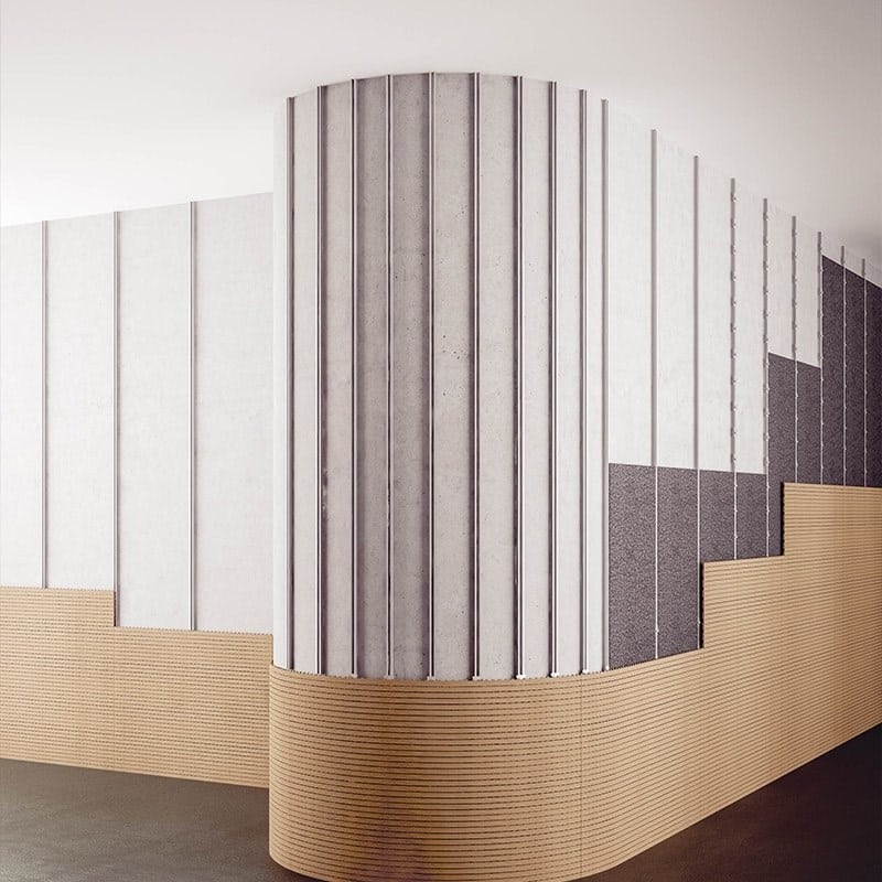 4akustik er et lydabsorberende system til brug på vægge og lofter, bestående af melaminbeklædte, lakerede eller finerede MDF-lameller. De høje ydeevneniveauer opnås takket være forskning i teorien om Helmholtz-resonatorer og lydspredning ved hjælp af porøse teksturer. 4akustik kombinerer fremragende lydabsorberende ydeevne med de højeste sundheds- og sikkerhedsstandarder.