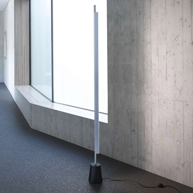 Gulv-versionen af Compendium giver et diffust lys. Kroppen huser en højeffektiv LED-kilde og roterer frit på bunden for at rette lyset mod væggen, hvilket forhindrer direkte blænding.