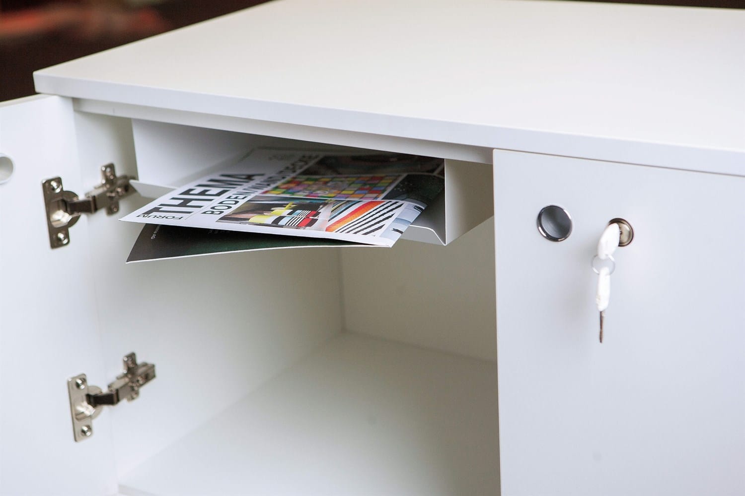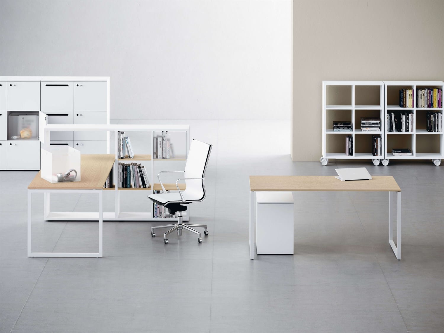 Møbelserien omfatter også uafhængig eller bærende side skabe og skuffeelementer, skærmpaneler og tilbehør til færdiggørelse af kontoret og til at sørge for arkivering af dokumenter. Opbevaringsskabe er tilgængelige med åbne fronter, trædøre eller hærdet krystalglasdøre.