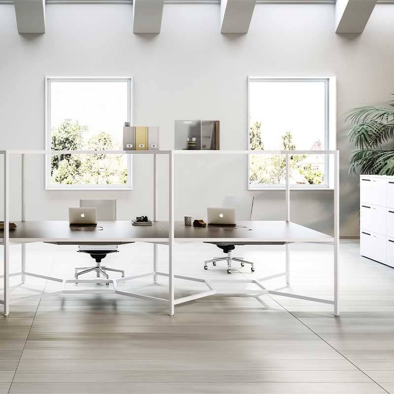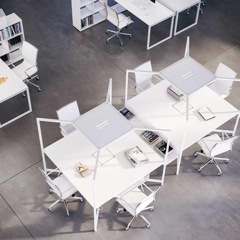Bordplader i melamin i farverne hvid, lysgrå eller ”silleben”.