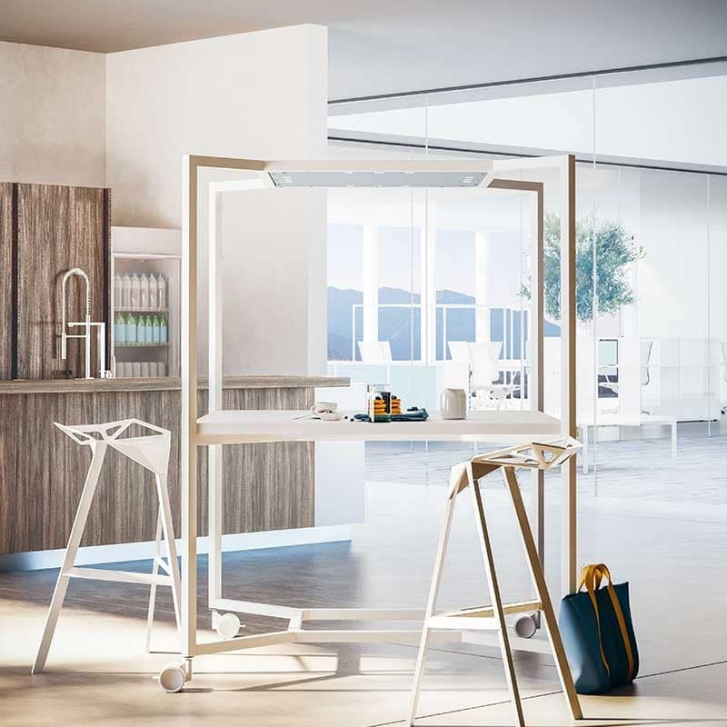 Hub-serien findes med eller uden ”tag” – modulerne med ”tag” har samme egenskaber som moduler på 75 cm højde plus de opretstående profiler i 160 cm høje, som støtter et firkantet overliggende panel. Der er også mulighed for at få overhead tværrammen med de svejste profiler som fastgører træhylden og det overliggende panel med LED lys.