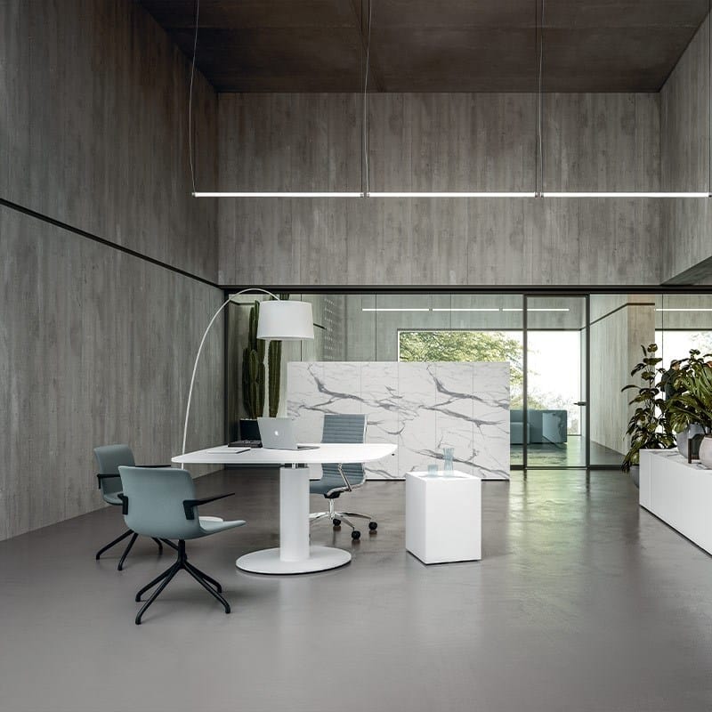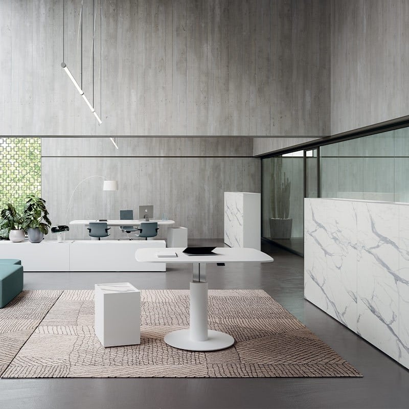 Meet Up-serien består af borde i en fast højde eller borde med justerbar træbase med en lignende konstruktion som faste borde, dog med en koncentrisk dobbelt-lags blok og en teleskopmekanisme til justering. Yderboksen står på gulvet og har paneler, der kan åbnes for eftersyn, mens inderkassen er fastmonteret til bordpladen. Der er afstandsstykker mellem inder- og yderkasse. Træbunden skjuler hhv. flere højdejusterbare søjler afhængig af konfigurationen og disse styres af et tastatur skruet op under toppen. Vandringen på de elektrisk justerbare borde varierer fra 75 til 125 cm.